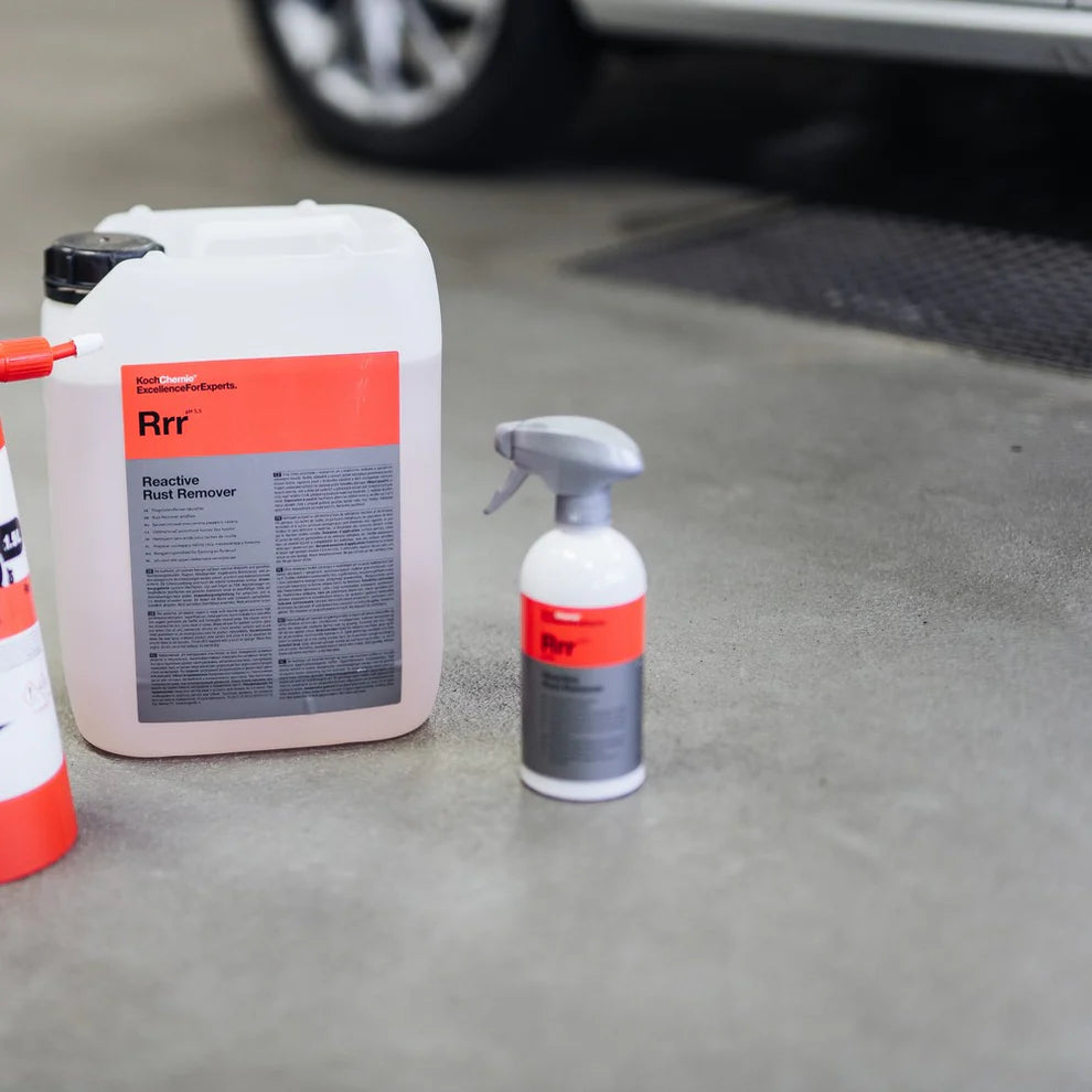 Koch-Chemie Reactive Rust Remover är en kraftfull, pH-neutral rostborttagare tillverkad av reaktiva medel och extra högpresterande rengöringsmedel. Ytlig rost, metallpartiklar, förbränd bromsdamm och andra icke-organiska föroreningar rensas snabbt och grundligt bort. Skonsam mot lacken. Komponenterna är samordnade för en längre kontakttid/återfuktning, så att de reaktiva ämnena kan lösa upp svåra fläckar och brända partiklar effektivt. När medlet har upplöst smutsen, blir den violett i färgen. De speciella tensiderna i formulan täcker och skingrar delvis upplöst smuts, så det blir lätt att skölja av medlet.