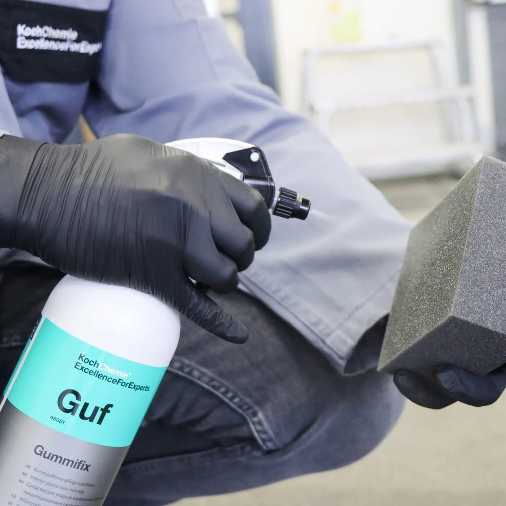 Koch-Chemie Gummifix är en Icke-fet, silikon- och oljefritt medel för gummi- och plastvård av till exempel fotmattor, plastytor och andra interiöra områden i bilar och fordon. Gör ytorna som nya!