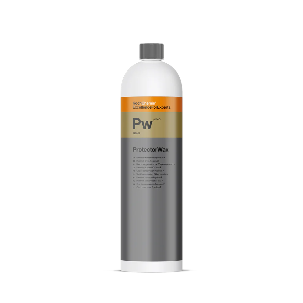 Koch-Chemie Protector Wax ger högglans, avrinning och skydd i ett. Det innovativa högteknologiska skyddsvaxet sätter nya standarder i fråga om skydd, hållbarhet, extremt djup glans, långsiktig avrinning, lätthet att rengöra och fordonstorkning utan mikropärlor. Användningen av polyfunktionella, reaktiva komponenter i kombination med kvalitativa vårdkomponenter, som binder med ytorna som ett nätverk, garanterar långvarigt högblankt skydd och förbättrad synlighet under regn (pärlande).